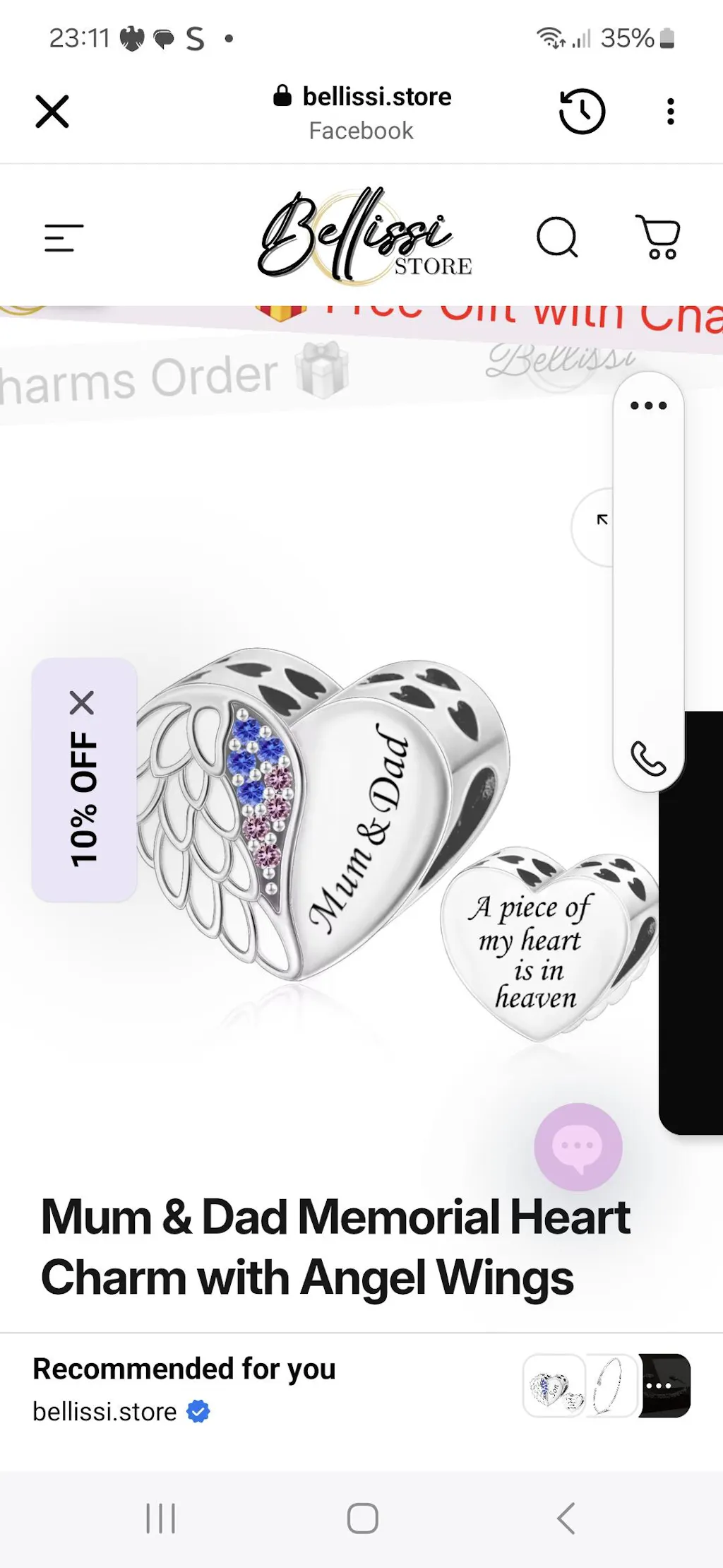 The back is engraved with the touching words “A piece of my heart is in heaven,” symbolizing eternal love and remembrance. A meaningful sympathy gift and keepsake charm, compatible with most popular charm bracelets and necklaces.